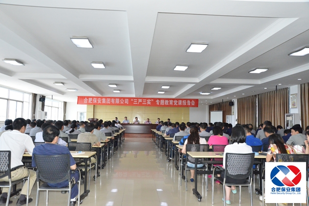 5月23日,根据市委、市国资委、兴泰金融控股集团党委部署要求,结合工作实际,保安集团举办了“三严三实”专题教育党课报告会,兴泰控股副总裁、保安集团党委书记、董事长应长春做了专题党课报告,集团公司党委委员、领导班子成员、各支部、总支部委员、机关部门负责人、各子分公司班子成员、2014年度优秀团队代表和优秀个人等200余人参加了报告会。
