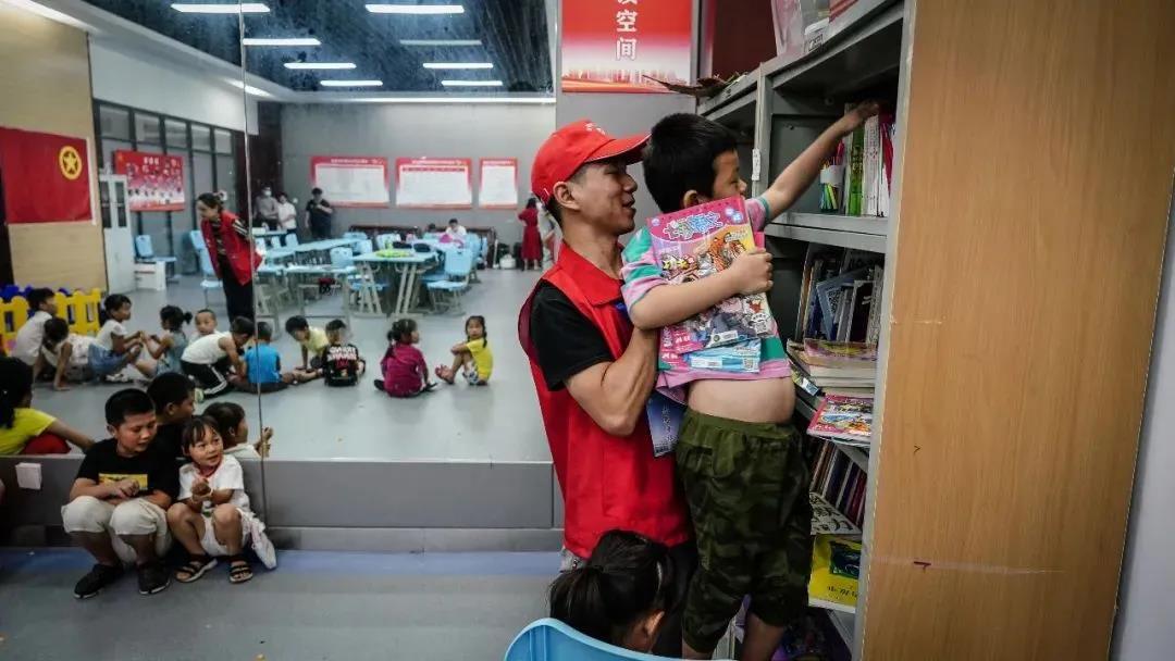 8月7日共青团中央官方微信公众号推送的《看!这件永不过时的“红马甲”》一文中,一张志愿者怀抱孩子拿取书记的照片,显得暖意融融。