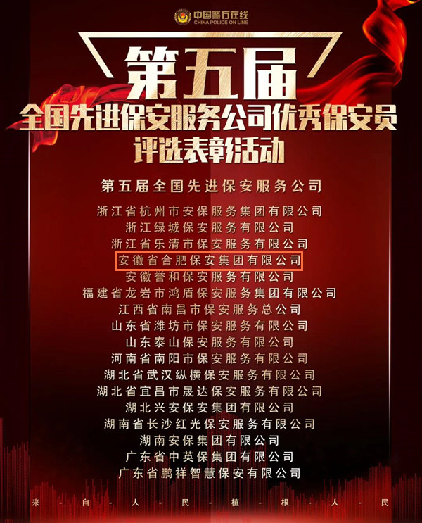近日,公安部、中华全国总工会、共青团中央联合发布表彰决定,对全国50家先进保安服务公司、100名优秀保安员进行表彰。williamhill英国官网获评全国先进保安服务公司。旗下控股子公司宿州市保安服务有限公司常务副总经理陈靖荣获全国优秀保安员。