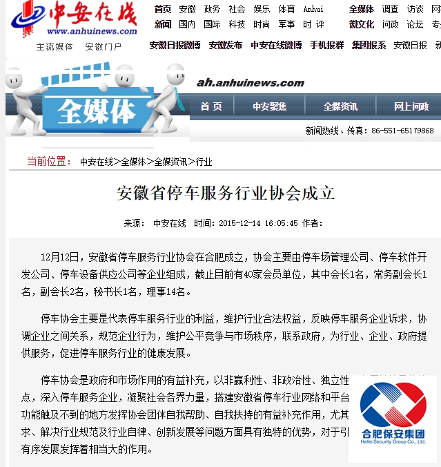 中安在线报道安徽省停车服务行业协会成立