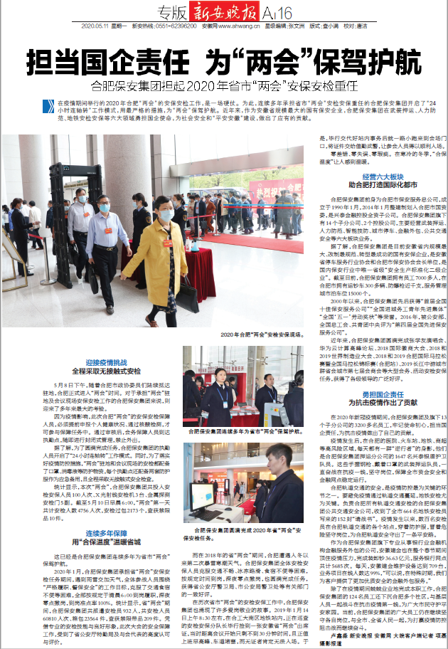 新安晚报报道williamhill英国官网承担2020市两会安保重任