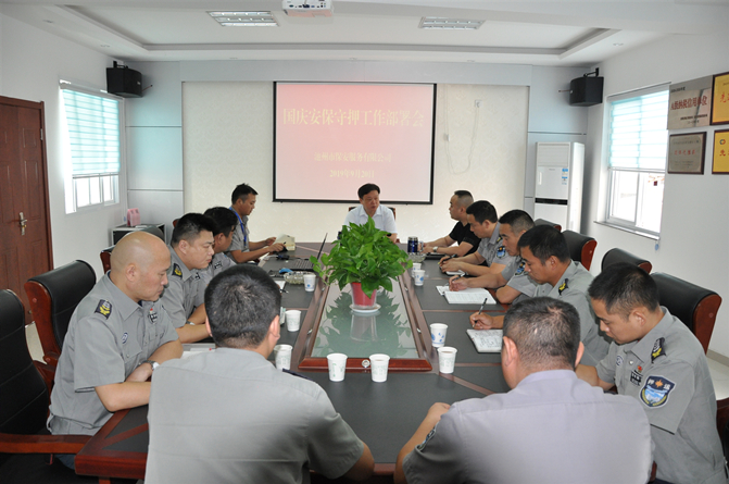 在2019年国庆来临之际,为确保新中国成立70周年大庆安保和节日期间公司武装押运工作安全、有序开展,9月20日上午,公司总经理方勇军主持召开了国庆安保武装押运工作部署会。