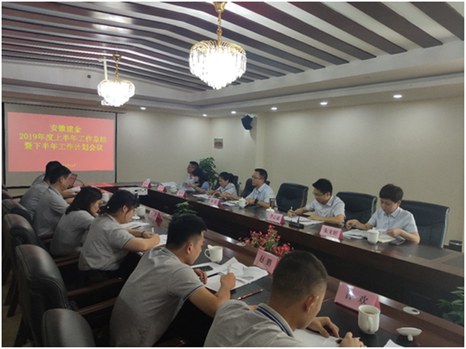 8月22日上午,安徽建金召开了2019年上半年工作总结暨下半年工作部署会议,贯彻落实集团公司党建经营会议精神,总结今年上半年工作,部署下半年工作。会议由技术总监陈磊主持,集团公司副总经理、公司董事长李志斌在会上讲话,公司各项目负责人和中后台管理人员参加了会议。